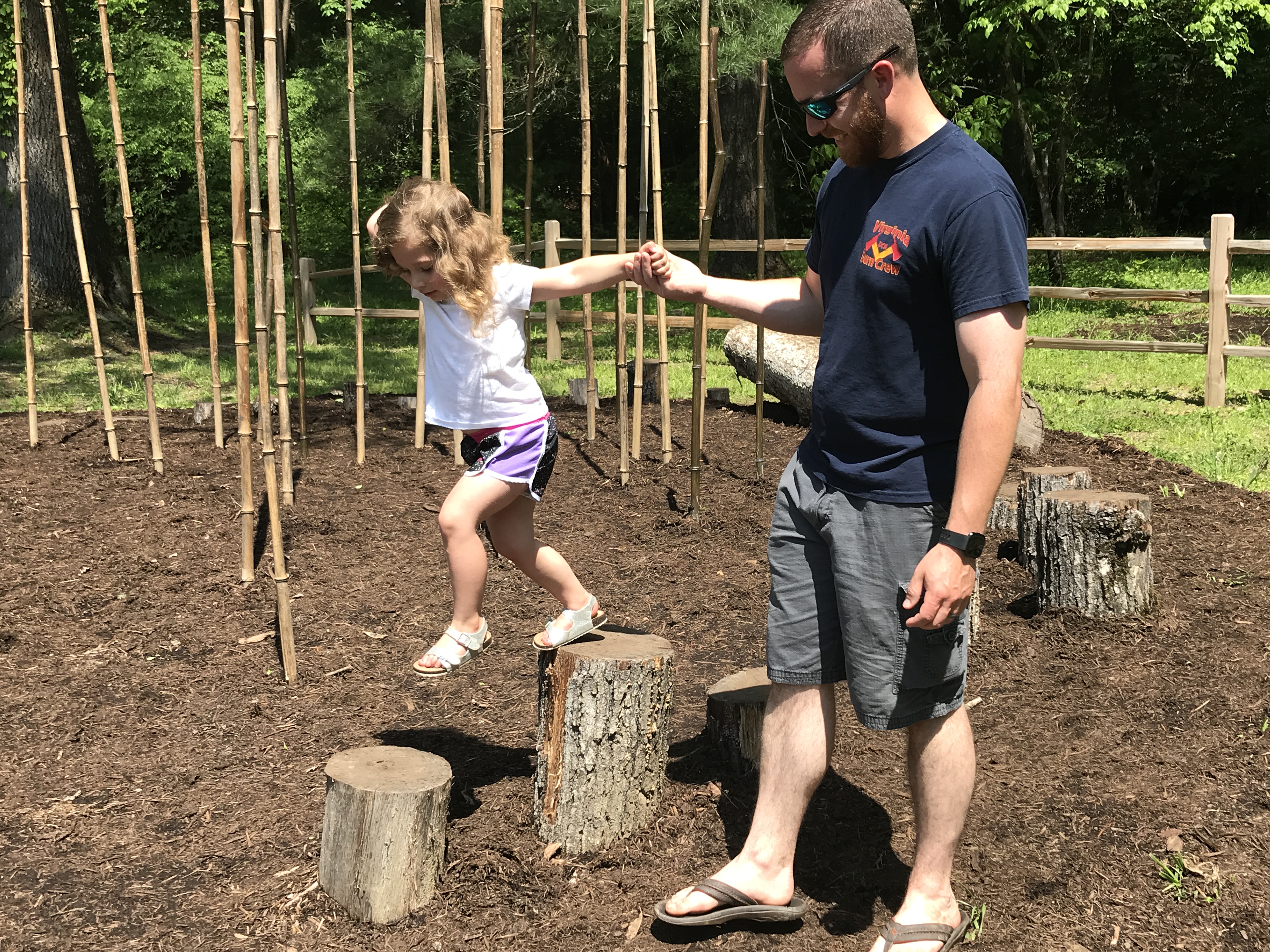 (የፎቶ መግለጫ፡- ኬቨን ማክዶናልድ እና ሴት ልጃቸው ኤሊ ከቨርጂኒያ የአትክልት ክለብ በተገኘ ስጦታ የተፈጠረውን በተራቡ እናት ስቴት ፓርክ የሚገኘውን አዲሱን የግኝት ስፍራዎች ያስሱ።)