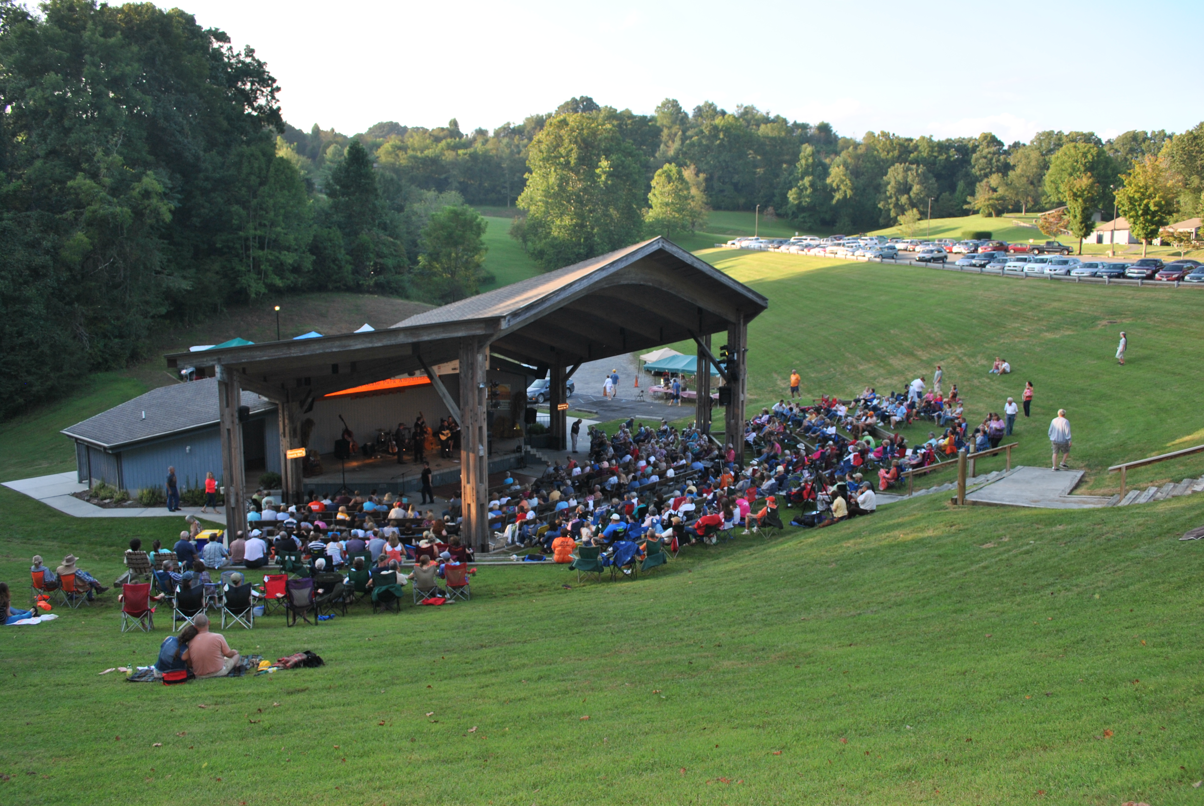 ከጣሪያው በታች ቋሚ መቀመጫዎች ሲኖሩ, ተጨማሪ መቀመጫዎች ይገኛሉ እና ከተቀመጡት መቀመጫዎች በስተጀርባ ባለው ሣር ላይ ጥቅም ላይ ይውላሉ, ስለዚህ የበዓሉ ታዳሚዎች የሣር ክዳን ወይም ብርድ ልብስ እንዲይዙ ይበረታታሉ. የመንቀሳቀስ ችግር ላለባቸው ለፌስቲቫሉ ተሳታፊዎች የማመላለሻ መንገድ ይኖራል። ወደ የኋለኛው ደረጃ ይወስዳቸዋል እና ወደ ቤታቸው ለመሄድ ሲዘጋጁ ወደ መኪና ማቆሚያ ቦታ ያመጣቸዋል.