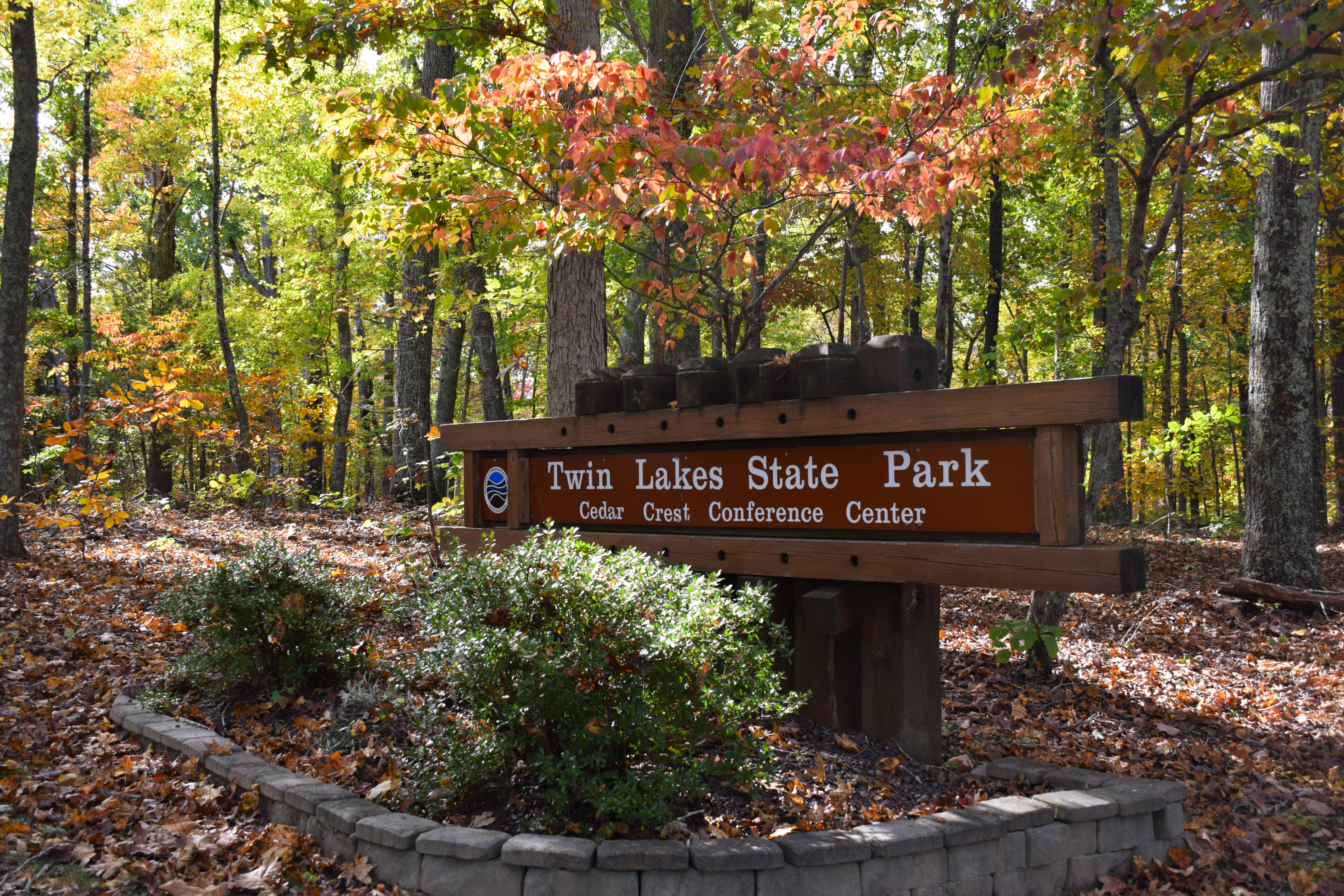 (አዘጋጆች፡ ምስል ለማውረድ ይህን ሊንክ ይከተሉ። የፎቶ መግለጫ፡ መንትያ ሐይቆች ስቴት ፓርክ ምልክት)